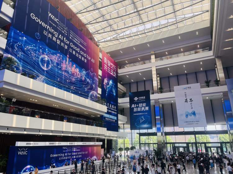 7月4日下午2点多,上海世博中心,3个电梯外面排了长长的四五列长队,每一层都有不同主题的论坛,1楼世博红厅的科学前沿主论坛,诺大的会场座无虚席;四楼五楼的论坛,从无问芯穹主办的AI基础设施论坛,到长三角国创中心AI新质生产力发展论坛,还是运营商等组织的论坛,到处座无虚席,甚至很多人挤在后面听分享。