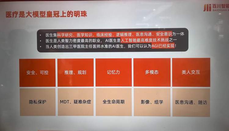 百川智能,这是去年4月刚成立的公司,经过一年多的发展,第一次在世界人工智能大会展区设了不小的展台,也展示了公司正在测试中的医疗应用AI健康顾问,周到君现场体验了下,比如从“一只眼睛红肿,该吃什么药?”这个问题开始,经过几轮对话,最后竟然可以给出一个比较靠谱的解决方案。