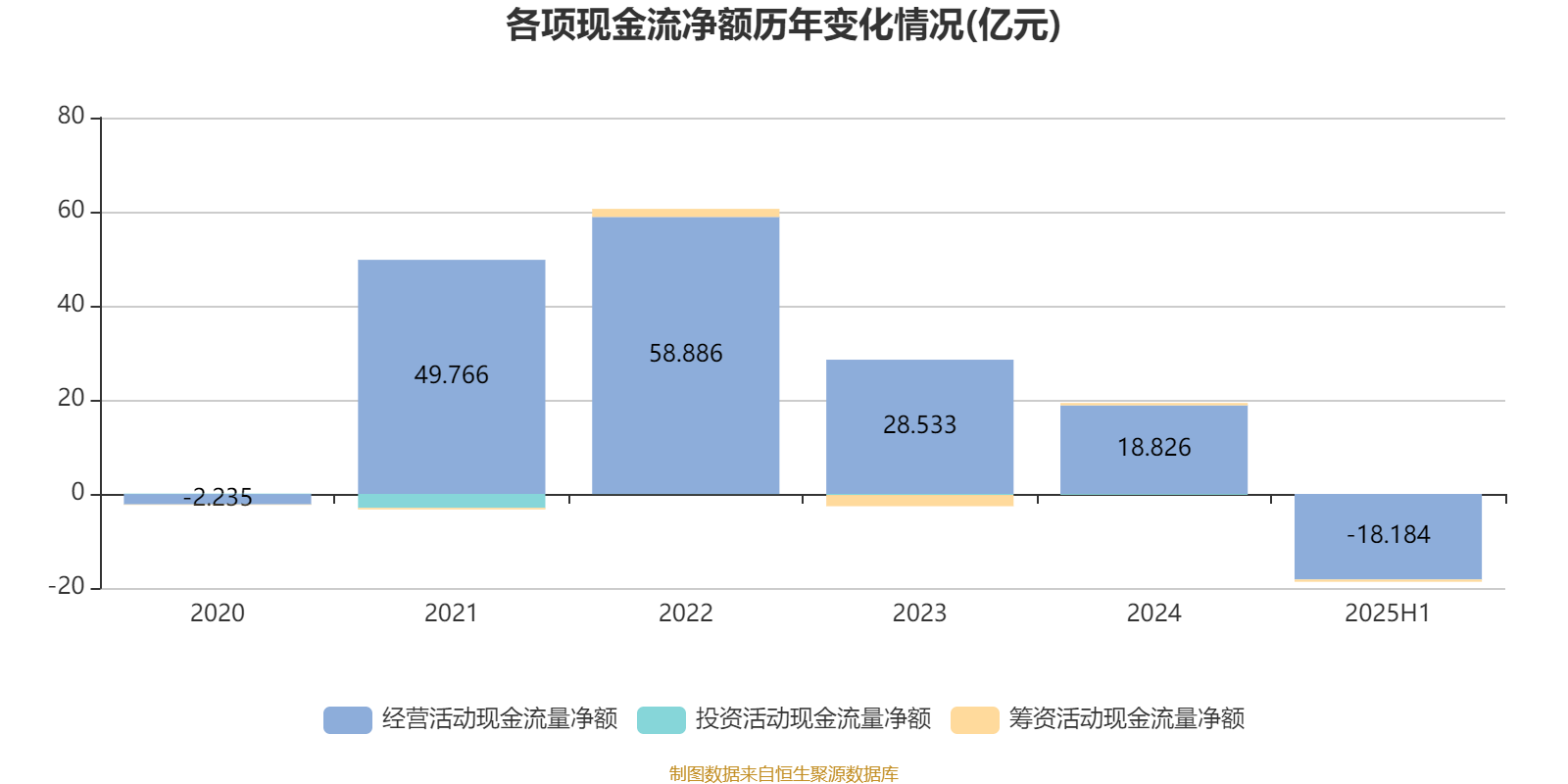 2025年上半年,实盘配资平台推荐公司经营活动现金流净额为-18.18亿元;筹资活动现金流净额-4765.44万元;投资活动现金流净额-176.02万元。