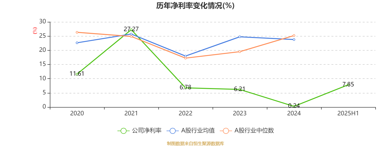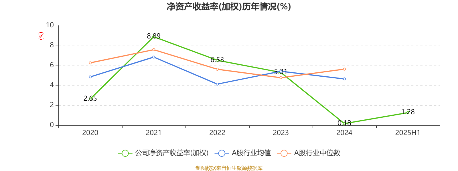 2025年上半年,公司平均净资产收益率为1.28%,较上年同期上升1.26个百分点。