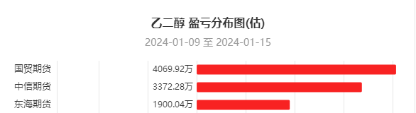 数据显示,一周内国贸期货、中信期货、东海期货在乙二醇上盈利居前,三机构分别盈利4069.92万元,3372.28万元,1900.04万元。
