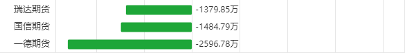 一周内一德期货、国信期货、瑞达期货在乙二醇上亏损居前,三机构分别亏损2596.78万元,1484.79万元,1379.85万元。